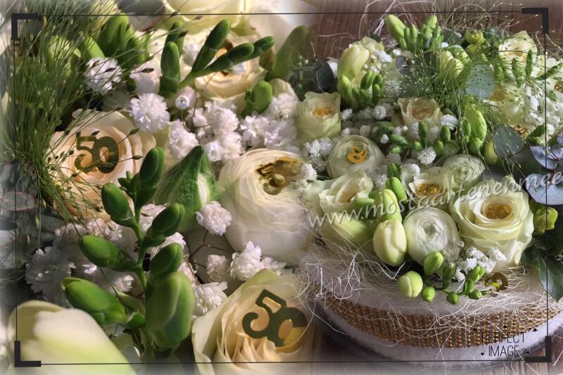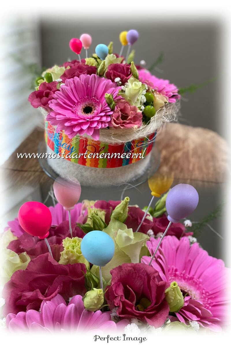 Bloementaart met leeftijd / jaartal confetti leuk voor trouwdag / verjaardag deze extra decoratie kost € 1,=