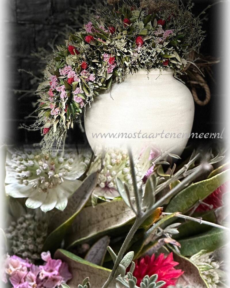 De toef is strak gebonden in een boogje zodat hij mooi op een kruik blijft liggen € 59,95